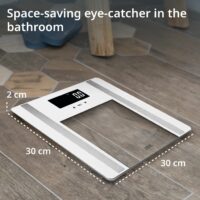 • Compact and practical: measuring 30 x 30 cm and only 2 cm high, these scales are very flat and space-saving. Includes 2 AAA batteries and German operating instructions
