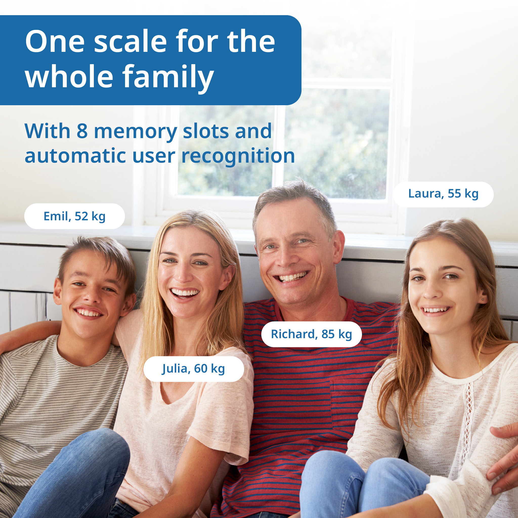 - Perfect for multi-person households: the bathroom scales automatically recognise up to 8 users and store individual values such as age, height and gender for accurate measurement results.