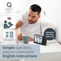 - Clear display with backlight: Large LCD display (9.4 x 8.2 cm) with automatic brightness control. Alternatively, you can choose from three manual brightness levels