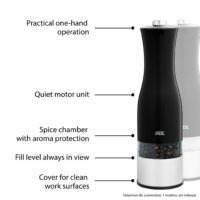 - Infinite adjustment from fine to coarse for salt, pepper and other spices