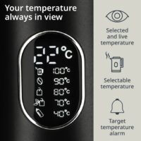 With the keep-warm function activated, the water remains at the desired temperature. Alternatively, the design kettle can be manually turned off.