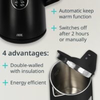 Always perfectly tempered water with the ADE electric kettle. Especially when preparing tea, baby food, or freshly brewed coffee, the right water temperature is crucial. Green tea becomes bitter when steeped with boiling water. Coffee from a French Press tastes particularly aromatic when prepared with water heated to 90 degrees Celsius.