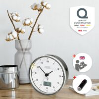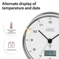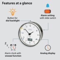 No more annoying ticking thanks to the whisper-quiet sweep movement. The radio alarm clock is not only quiet, it also comes with a practical interior temperature and date display every 20 seconds. The time is set automatically thanks to the DCF radio signal and the changeover from summer to winter time is also automatic – a manual radio time query is also possible. The alarm clock with snooze function and the display lighting are part of the standard of this ADE radio alarm clock.