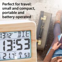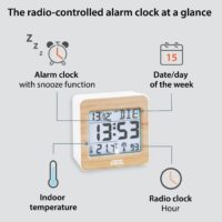 - Radio controlled clock (DCF radio signal), automatic and manual time setting