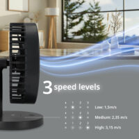- 3 speeds: Choose from 3 power levels (1.5m/s, 2.35m/s, 3.15m/s) using the control button for the perfect breeze. The 180° rotatable head allows for precise airflow direction, ensuring optimal cooling at all times.