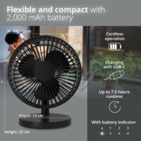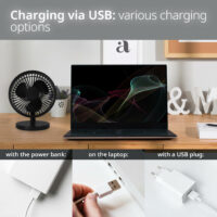- Long battery life: Enjoy up to 7.5 hours of uninterrupted cooling without the hassle of cables (on level 1). A 1m long USB-C charging cable is included, with an indicator showing when the fan needs charging.