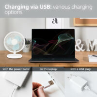 - Long battery life: Enjoy up to 7.5 hours of uninterrupted cooling without the hassle of cables (on level 1). A 1m long USB-C charging cable is included, with an indicator showing when the fan needs charging.