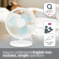 - Secure stand and easy operation: With its sturdy base, simple setup, and compact dimensions (18 x 22 cm), this fan is the ideal choice.