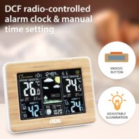 • Radio clock (DCF radio signal) with manual time setting and alarm and snooze function