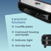 Easy cleaning is just as important to us as it is to you. That’s why we equipped the triple waffle iron with a high-quality non-stick coating. This not only makes it easy to release the waffles from the molds but also ensures that the appliance is quickly cleaned – simply wipe with a damp cloth, dry, and you’re done.