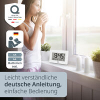 • Funkuhr (DCF Zeitsignal), automatische und manuelle Zeiteinstellung