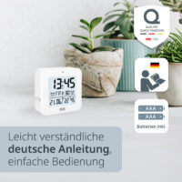 - Uhr mit Temperaturanzeige, Hygrometer, Datum: Die Uhr zum Hinstellen misst Temperatur (°C/°F) und Luftfeuchtigkeit für gutes Raumklima ohne Schimmelgefahr. Der lautlose digitale Wecker zeigt Datum und Wochentag an